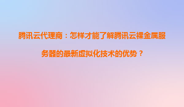 2025-10-26腾讯云代理商:揭秘裸金属服务器最新虚拟化技术优势 一、裸金属服务器的核心价值与腾讯云定位 裸金属服务器(BareMetalServer)作为云计算领域的“物理机+云...