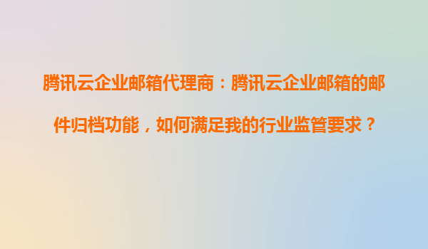 2025-10-26腾讯云企业邮箱邮件归档功能如何满足行业监管要求 一、行业监管对邮件归档的核心要求 在金融、医疗、法律等高度监管的行业中,邮件作为重要通讯凭证,通常需要满足以下监管要求: 数据完...