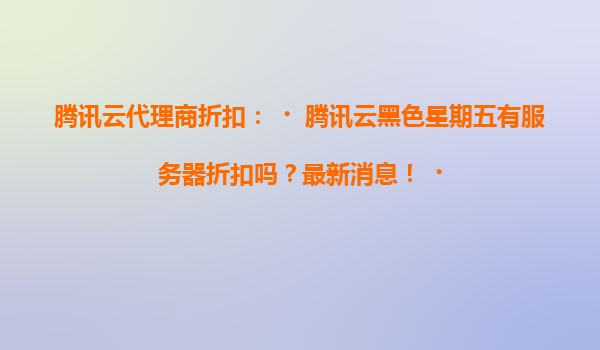 2025-04-17腾讯云黑色星期五服务器折扣来袭!代理商助力企业轻松上云 一、腾讯云黑色星期五活动最新动态 每年11月的黑色星期五都是云计算行业的促销盛宴,腾讯云作为国内领先的云服务商,今年将继续推出限时服务...