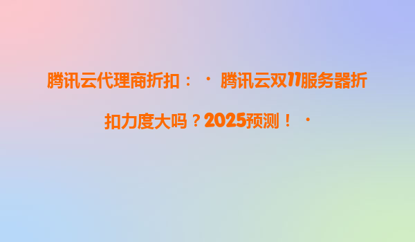 2025-04-17腾讯云双11服务器折扣力度解析 腾讯云每年的双11活动都是用户关注的焦点,今年的服务器折扣力度更是备受期待。根据过往经验,腾讯云通常会在双11期间推出高达50%以上的限时折扣,覆盖云服务器、数...