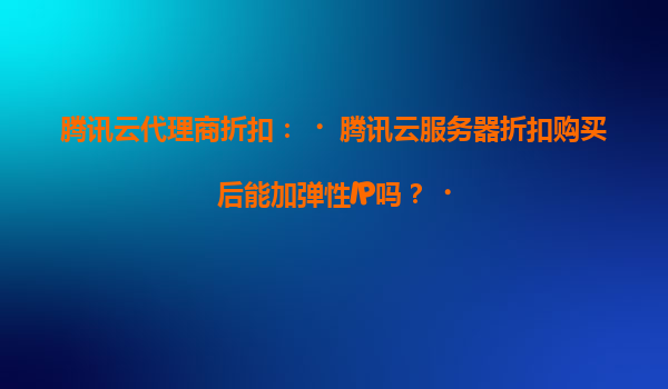 2025-04-16腾讯云代理商折扣:购买云服务器后能否绑定弹性IP? 许多用户在通过腾讯云代理商购买折扣云服务器时,常会关注后续功能扩展的灵活性,尤其是弹性IP的绑定问题。答案是肯定的!无论用户通过何种渠道购买的腾...
