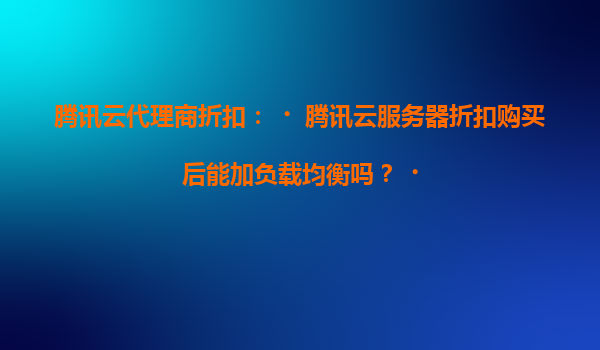 2025-04-16腾讯云代理商折扣:购买腾讯云服务器后能加负载均衡吗? 一、腾讯云服务器与负载均衡的兼容性 通过腾讯云代理商购买的折扣云服务器(CVM)完全支持后续添加负载均衡(CLB)服务。腾讯云提供高度灵...