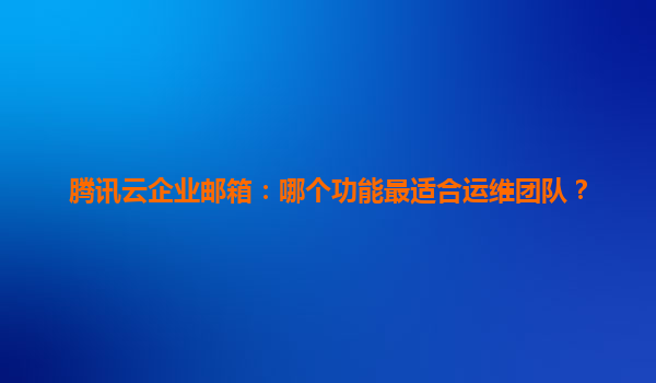 2025-04-16腾讯云企业邮箱:哪个功能最适合运维团队? 一、运维团队的核心需求与腾讯云企业邮箱的匹配性 运维团队作为企业IT基础设施的核心支撑部门,对邮箱系统的需求不仅限于基础通信功能,更需要高效管理、安...
