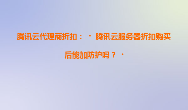 2025-04-16腾讯云代理商折扣:腾讯云服务器折扣购买后能加防护吗? 一、腾讯云的核心优势 作为国内领先的云计算服务商,腾讯云凭借其技术实力和资源覆盖能力,为用户提供高性能、高可用的云服务器(CVM...