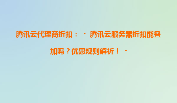 2025-04-15腾讯云代理商折扣:腾讯云服务器折扣能叠加吗?优惠规则解析! 一、腾讯云的核心优势解析 腾讯云作为全球领先的云计算服务商,凭借其强大的技术能力和生态资源,为企业提供高性能、高可用的云服务解决...