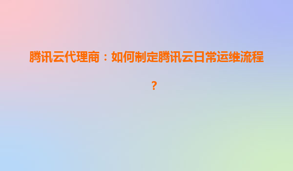 2025-04-15腾讯云代理商:如何制定腾讯云日常运维流程? 一、腾讯云的核心优势与运维价值 腾讯云作为全球领先的云服务提供商,其核心优势为代理商构建高效运维流程提供了坚实基础: 全球基础设施覆...