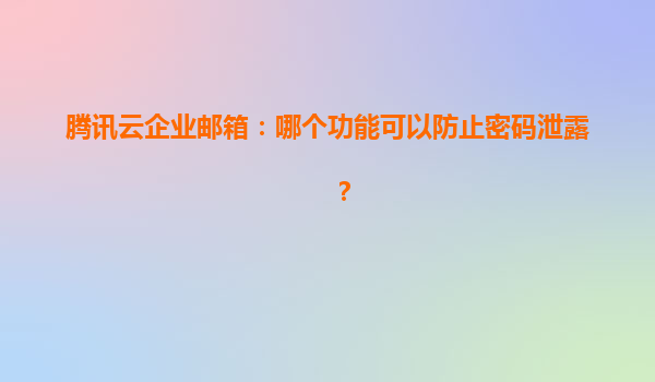 2025-04-15腾讯云企业邮箱如何构建密码安全防线 密码安全对企业运营的重要性 在数字化办公时代,企业邮箱承载着核心商业机密与重要业务数据。腾讯云企业邮箱通过构建六重密码防护体系,为超...