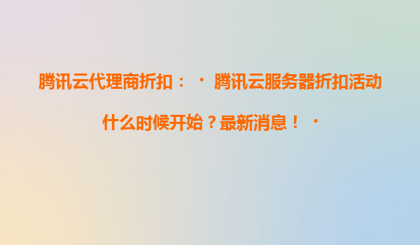 2025-04-15腾讯云代理商折扣活动最新消息:如何抓住最佳优惠时机? 随着企业数字化转型加速,腾讯云作为国内领先的云计算服务商,其服务器资源与技术服务已成为众多企业的首选。对于计划采购云服务的企业和开...