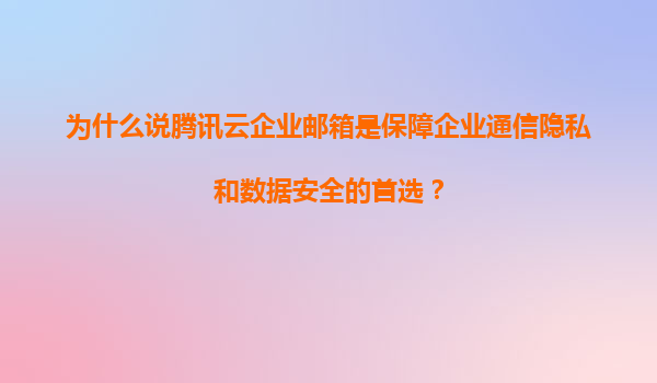 2025-11-21为什么说腾讯云企业邮箱是保障企业通信隐私和数据安全的首选? 在数字化时代,企业通信和数据安全的重要性日益凸显。腾讯云企业邮箱凭借其强大的技术实力和全面的安全保障,成为众多企业的首选。以下是腾讯云企业邮...