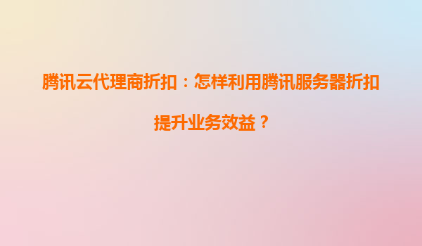 2025-04-11如何利用腾讯云代理商折扣提升业务效益? 在数字化转型的浪潮中,云计算已成为企业降本增效的核心工具。腾讯云作为国内领先的云服务提供商,凭借其强大的技术能力和丰富的产品矩...