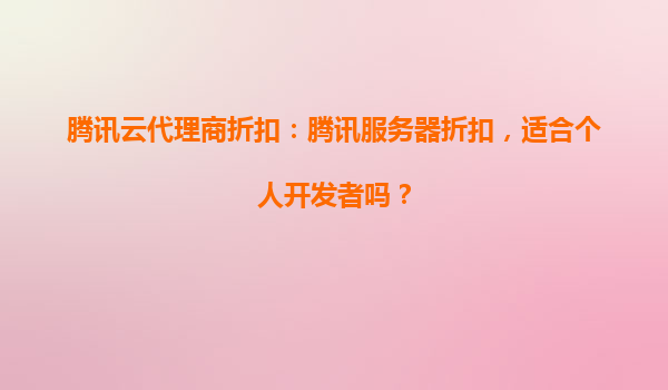 2025-04-11腾讯云代理商折扣:个人开发者低成本上云的理想选择 在数字化转型的浪潮中,个人开发者已成为云计算领域不可忽视的创新力量。腾讯云凭借其强大的技术实力和灵活的产品策略,通过代理商折扣模式为个...