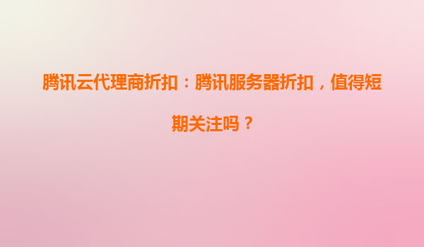 2025-04-11腾讯云代理商折扣:腾讯服务器折扣,值得短期关注吗? 一、腾讯云的核心优势 作为国内领先的云计算服务商,腾讯云凭借其技术实力和生态布局,在服务器、数据库、AI等领域占据重要地位。...