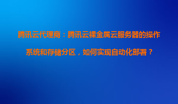 2025-10-25腾讯云代理商:腾讯云裸金属云服务器的操作系统和存储分区自动化部署指南 引言 在当今数字化时代,企业对于高效、灵活的云计算基础设施需求日益增长。作为国内领先的云计算服务提供商,腾讯云凭借其强...
