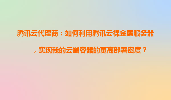 腾讯云代理商指南:如何利用腾讯云裸金属服务器实现云端容器更高部署密度 引言 随着云计算技术的快速发展,容器化部署已成为企业构建现代化应用的主流选择。然而,传统的虚拟化...