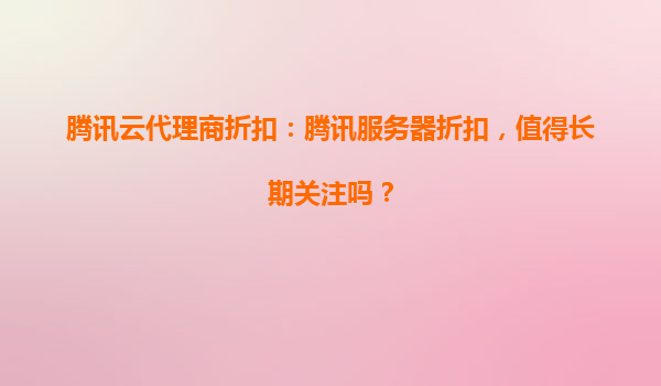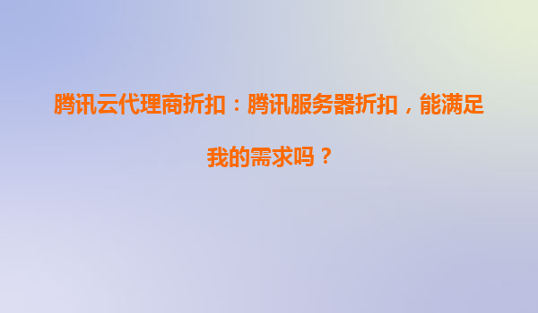 2025-04-10腾讯云代理商折扣:如何满足您的服务器需求? 一、腾讯云的核心优势 腾讯云作为全球领先的云计算服务商,凭借其强大的技术实力和丰富的产品矩阵,为企业提供安全、稳定、高效的云服务。...