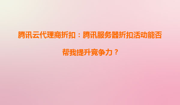 2025-04-08如何通过腾讯云代理商折扣活动优化企业预算分配? 在数字化转型浪潮下,云计算已成为企业IT建设的核心基础设施。如何合理分配预算、最大化资源利用率成为企业关注重点。本文将解析如何通过腾讯云官...