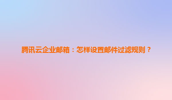 腾讯云企业邮箱:如何高效设置邮件过滤规则? 一、腾讯云企业邮箱的核心优势 腾讯云企业邮箱基于腾讯二十余年邮件系统技术积累,为企业用户提供以下核心能力: 智能反垃...