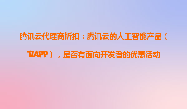 2025-10-25腾讯云代理商折扣:腾讯云人工智能产品(TIAPP)开发者优惠活动详解 一、腾讯云人工智能产品(TIAPP)简介 腾讯云人工智能产品(TencentCloudIntelligentAIProducts,简称TIAPP)是腾讯云基于...