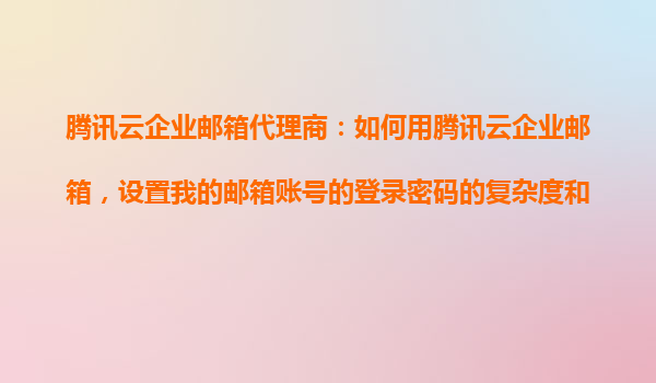 2025-10-25腾讯云企业邮箱代理商指南:如何设置邮箱账号的登录密码复杂度和时效性 一、腾讯云企业邮箱的安全管理优势 腾讯云企业邮箱作为国内领先的企业级邮箱服务,提供了完善的安全管理功能,尤...