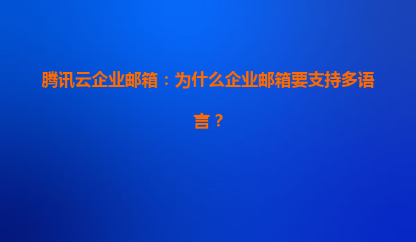 2025-04-04腾讯云企业邮箱:为什么企业邮箱要支持多语言? 一、全球化背景下企业邮箱的多语言需求 随着企业全球化布局加速,跨国团队协作、海外客户沟通成为常态。多语言支持的企业邮箱能够打破语言壁垒,提...