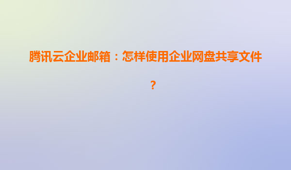 2025-04-04腾讯云企业邮箱:高效共享文件的企业网盘使用指南 企业网盘的核心价值 在数字化办公时代,文件共享与协作效率直接影响团队生产力。腾讯云企业邮箱内置的企业网盘功能,将邮箱服务与云端存储深...