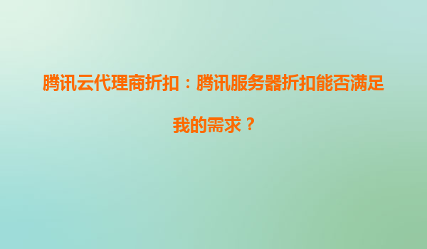 2025-04-04腾讯云代理商折扣的独特优势 对于企业用户而言,腾讯云代理商提供的服务器折扣政策是降低IT成本的重要途径。通过官方授权代理商,用户可享受长期稳定的专属折扣,部分机型折扣力度可达官网价格的7...