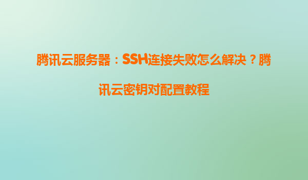 腾讯云服务器SSH连接失败解决方案及密钥对配置教程 一、SSH连接失败的常见原因及解决方法 在使用腾讯云服务器时,SSH连接失败可能由以下原因引起: 网络配...