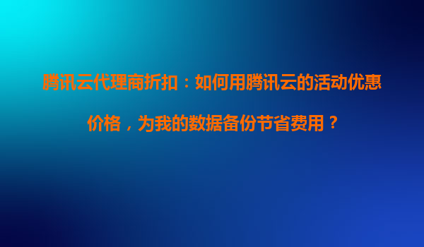 2025-10-25腾讯云代理商折扣:如何用腾讯云的活动优惠价格,为我的数据备份节省费用? 在数字化时代,数据备份已成为企业和个人不可或缺的需求。然而,随着数据量的增长,云存储成本也在不断攀升。如何在不影响数据...