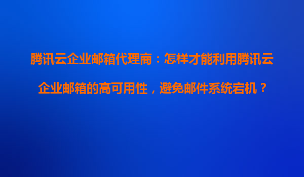 2025-10-25腾讯云企业邮箱代理商:如何利用高可用性避免邮件系统宕机 腾讯云企业邮箱的高可用性架构 腾讯云企业邮箱基于腾讯云全球分布式数据中心构建,采用多机房异地容灾部署,确保服务的高可用性。通过智...