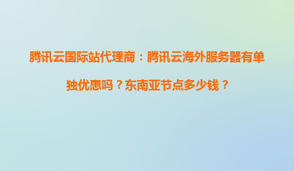 2025-04-02腾讯云国际站代理商:海外服务器单独优惠与东南亚节点价格解析 一、腾讯云国际站代理商的独特优势 作为全球领先的云计算服务商,腾讯云通过国际站代理商体系为海外用户提供本地化服务支持。代理商...