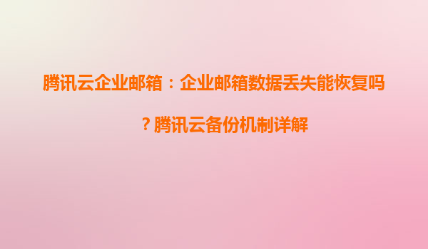 2025-04-02腾讯云企业邮箱:企业邮箱数据丢失能恢复吗? 在数字化办公时代,企业邮箱承载着大量核心业务数据。然而,误删除、系统故障、网络攻击等问题可能导致数据丢失风险。腾讯云企业邮箱凭借其强大的备份...