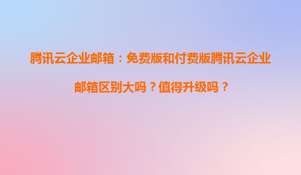 2025-04-01腾讯云企业邮箱:免费版与付费版功能对比 作为国内领先的云计算服务商,腾讯云企业邮箱凭借其稳定性和安全性成为众多企业的选择。免费版与付费版在核心功能上均支持多终端同步、邮件归档等基础服务,但付费版在...