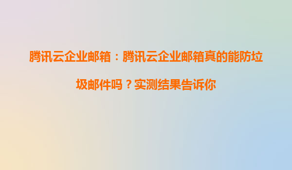 2025-04-01腾讯云企业邮箱:腾讯云企业邮箱真的能防垃圾邮件吗?实测结果告诉你 一、企业邮箱为何需要专业的垃圾邮件防护? 随着企业数字化进程加速,邮件已成为核心沟通工具。然而,垃圾邮件、钓鱼邮件、病毒附件等...