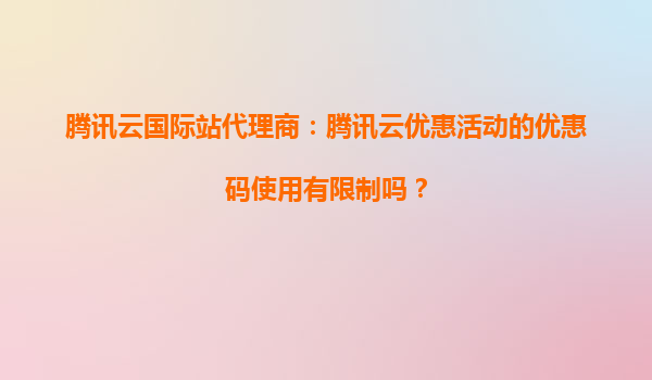 2025-04-01腾讯云国际站代理商:腾讯云优惠活动的优惠码使用有限制吗? 一、腾讯云国际站的核心优势 作为全球领先的云服务提供商,腾讯云国际站通过以下优势助力企业数字化转型: 全球化基础设施覆盖:7...