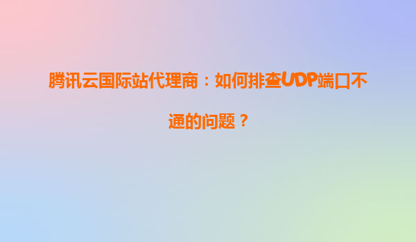 2025-04-01腾讯云国际站代理商:如何排查UDP端口不通的问题? 一、UDP端口不通的常见原因分析 UDP协议因其无连接、低延迟的特性被广泛应用于实时通信场景,但同时也增加了端口排查的复杂度。以下是可能导致UDP端...