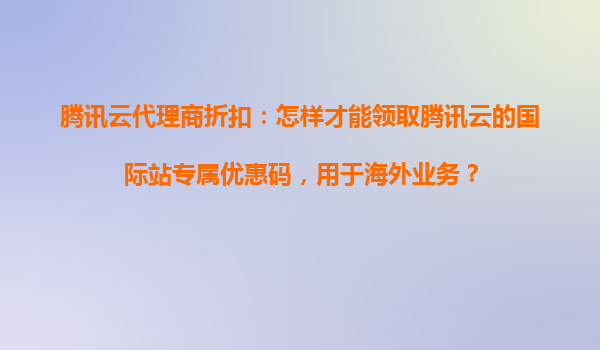 2025-10-23腾讯云代理商折扣:如何领取腾讯云国际站专属优惠码,助力海外业务拓展? 一、腾讯云国际站的优势 腾讯云国际站(TencentCloudInternational)是腾讯云面向全球用户提...