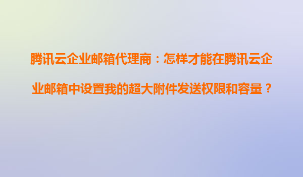 腾讯云企业邮箱代理商指南:如何设置超大附件发送权限和容量 一、腾讯云企业邮箱的核心优势 作为国内领先的企业邮箱服务商,腾讯云企业邮箱凭借以下优势成为众多企业的首选: 安全稳定:采用...