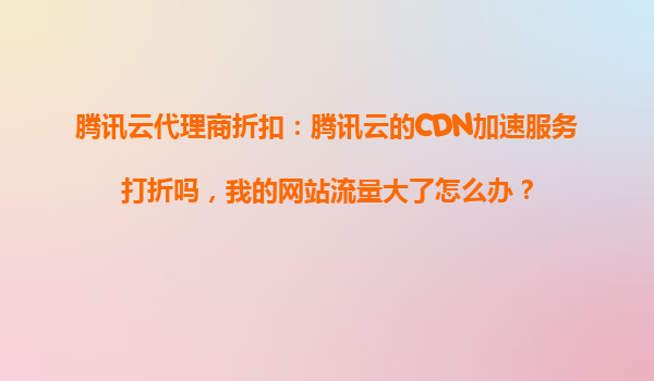 2025-10-23腾讯云代理商折扣:腾讯云的CDN加速服务打折吗?流量激增如何应对? 1.腾讯云CDN加速服务是否提供折扣? 腾讯云作为国内领先的云服务提供商,其CDN(内容分发网络)加速服务通过分布式节点缓存资源,...