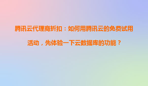 2025-10-23腾讯云代理商折扣:如何用腾讯云的免费试用活动体验云数据库功能? 为什么要选择腾讯云? 腾讯云作为国内领先的云计算服务提供商,凭借其强大的技术实力和丰富的产品线,已成为众多企业和...