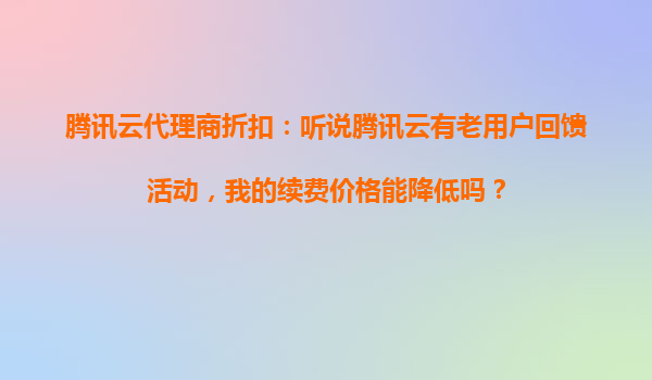 2025-10-23腾讯云代理商折扣:老用户回馈活动解析与续费优惠指南 一、腾讯云老用户回馈活动概述 腾讯云作为国内领先的云计算服务商,长期通过代理商折扣和老用户回馈活动提升客户黏性。近期推出的"...