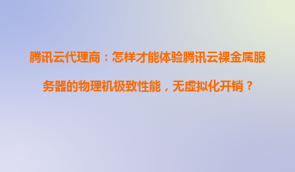 2025-10-22腾讯云代理商指南:如何体验腾讯云裸金属服务器的物理机极致性能 一、裸金属服务器的核心优势 腾讯云裸金属服务器(CloudPhysicalMachine,CPM)是一种兼具物理机性能与云服务弹性的计...