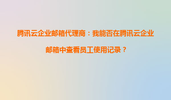 2025-10-18腾讯云企业邮箱代理商:能否查看员工使用记录? 一、腾讯云企业邮箱概述 腾讯云企业邮箱是基于腾讯多年邮件系统技术积累推出的专业化企业邮箱服务,为企业提供安全、稳定、高效的邮...