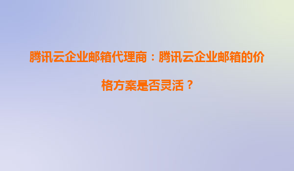 腾讯云企业邮箱代理商:腾讯云企业邮箱的价格方案是否灵活? 一、腾讯云企业邮箱代理商的价值与优势 腾讯云企业邮箱作为国内领先的企业级邮箱服务,不仅提供稳定的技术支持和丰富的功能,还通过代理商...