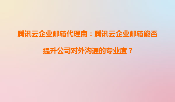 2025-10-18腾讯云企业邮箱代理商:腾讯云企业邮箱能否提升公司对外沟通的专业度? 一、腾讯云企业邮箱的核心优势 腾讯云企业邮箱作为国内领先的企业级邮箱服务,依托腾讯强大的技术实力和生态资源...