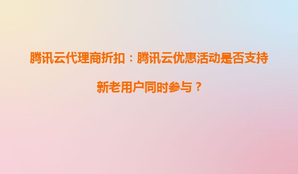 2025-10-17腾讯云代理商折扣:腾讯云优惠活动是否支持新老用户同时参与? 一、腾讯云优惠活动概述 腾讯云作为国内领先的云计算服务提供商,长期推出各类优惠活动,旨在为企业及个人开发者提供高性价比的云服务。...