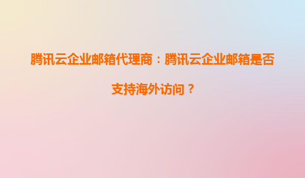 腾讯云企业邮箱代理商:腾讯云企业邮箱是否支持海外访问? 一、腾讯云企业邮箱的核心优势 作为国内领先的企业级邮箱服务提供商,腾讯云企业邮箱凭借其稳定性、安全性和全球化部署能力,已成为众多...