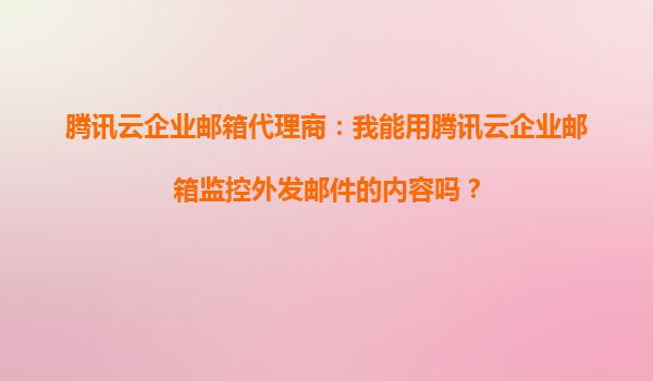 2025-10-14腾讯云企业邮箱代理商:如何通过外发邮件监控提升企业管理效率? 一、腾讯云企业邮箱的外发邮件监控功能 在企业管理中,信息安全与合规性至关重要。腾讯云企业邮箱作为国内领先的企业级邮箱服务,...