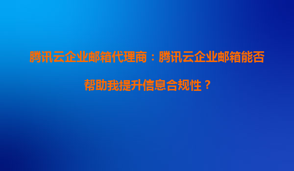 腾讯云企业邮箱如何助力企业提升信息合规性 一、企业信息合规性的重要性 在数字化时代,企业数据安全与合规性已成为核心管理议题。无论是《网络安全法》《数据安全法》还是行业特定规范,均对企业信息存储...