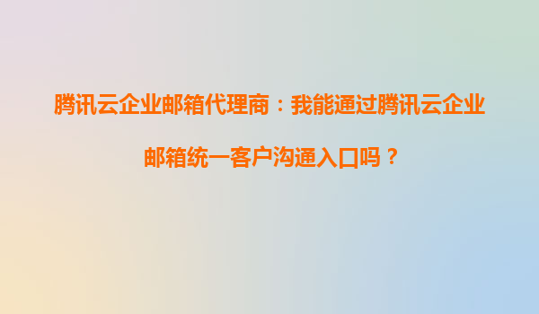 2025-10-11腾讯云企业邮箱代理商:统一客户沟通入口的智能化解决方案 一、腾讯云企业邮箱的核心价值 作为企业数字化转型的重要工具,腾讯云企业邮箱不仅提供基础的邮件收发功能,更通过统一沟通入...
