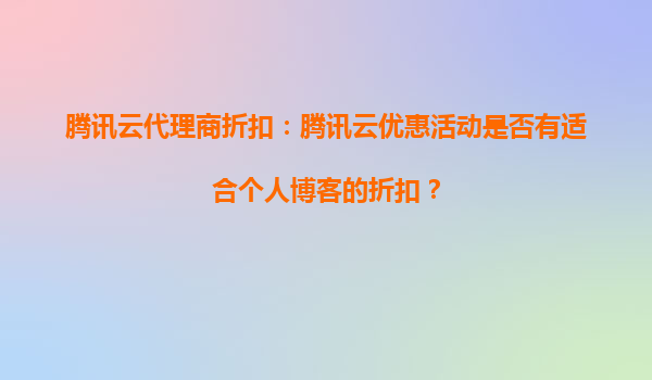 腾讯云代理商折扣:腾讯云优惠活动是否有适合个人博客的折扣? 一、腾讯云的优势解析 腾讯云作为国内领先的云计算服务商,凭借其稳定的性能、丰富的产品线以及灵活的计费方式,成为众多企业和个人开发者的...